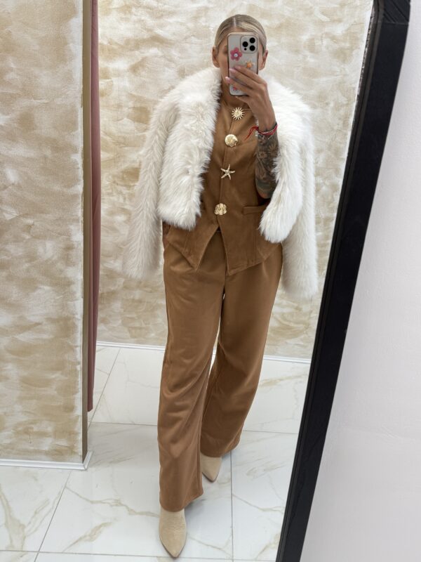£36.00 Read moreChannel your inner Italian goddess with the Seashell Muse Set 🌊. This stunning light brown ensemble features luxurious suede-like fabric, elegant wide-leg trousers, and a statement vest adorned with gold sea-inspired buttons — sun, shell, starfish, and coral 🌞🐚⭐. Perfect for those who love effortless sophistication with a touch of coastal glam.
