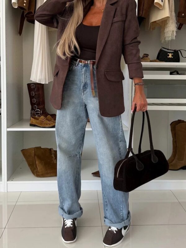 £37.99Original price was: £37.99.£32.99Current price is: £32.99. Add to cartMeet your new wardrobe essential — the Lapparel Cocoa Muse Blazer 🤎. Designed in a soft suede-effect fabric, this timeless brown blazer combines tailored sophistication with effortless comfort. A statement of understated luxury for every modern muse ✨.