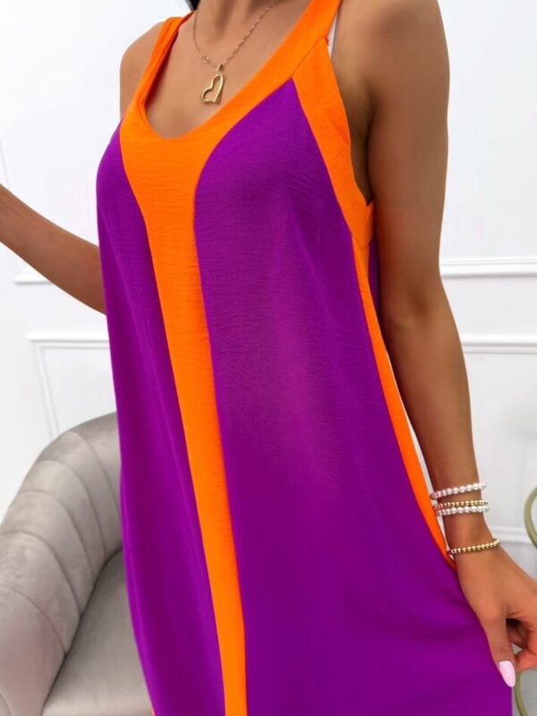 💜 Violet Bloom Contrast Maxi – Sleeveless, low V-neck, and bold colour block design. Soft, stretchy fabric. Sizes S (UK 8), M (UK 10), L (UK 12). Length approx. 43″ (110cm).