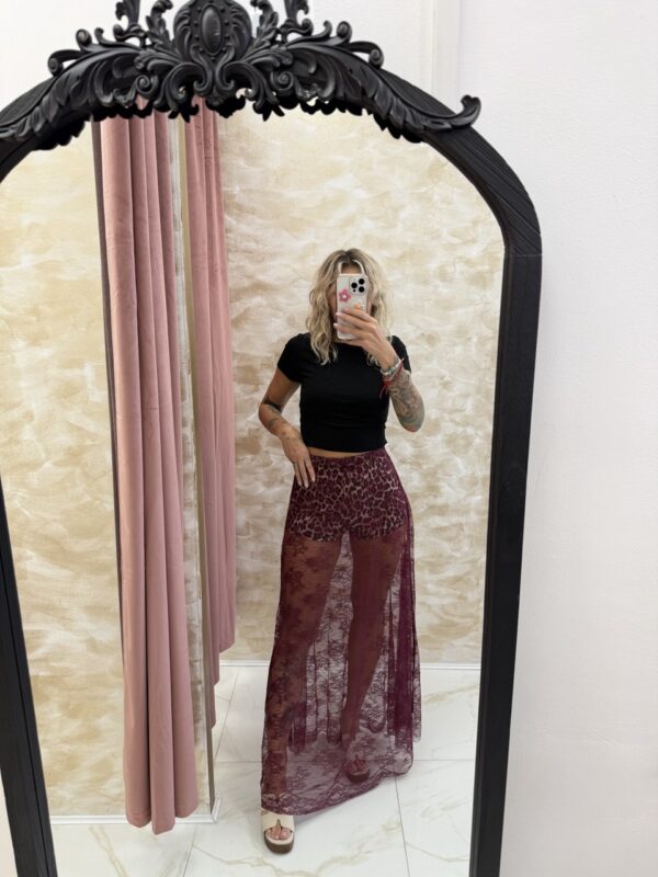 A sultry sheer lace maxi skirt with built-in shorts 🍷🔥. The Amara Skirt combines elegance and edge, making it the ultimate statement piece for nights out. Size S.