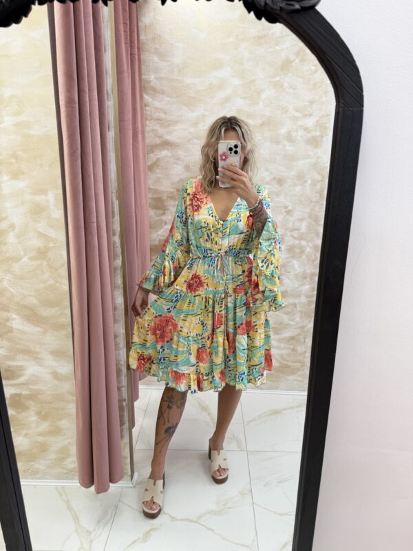Step into sunshine with the Solara Bloom Dress – a radiant blend of boho charm and bold floral energy. With its oversized fit, breezy shape, and golden yellow tones, this tunic dress is your ticket to effortless summer style. From lazy lunches to sunset strolls, Solara brings the glow. 🌼✨