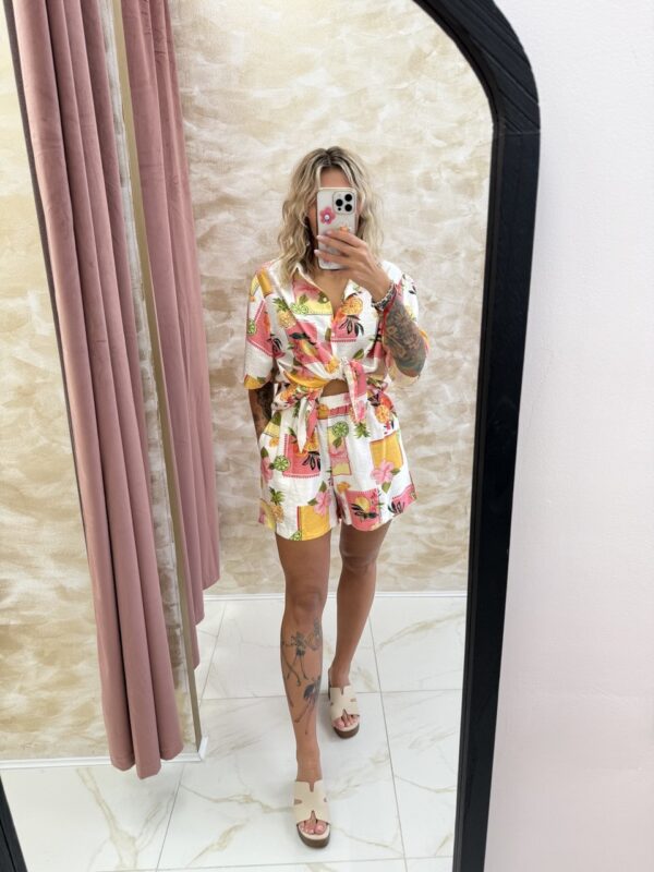 Bright, bold & breezy 🌺🍍 — the Tropica Set features a relaxed-fit button-up shirt and matching shorts in a vibrant tropical print. One Size fits most.