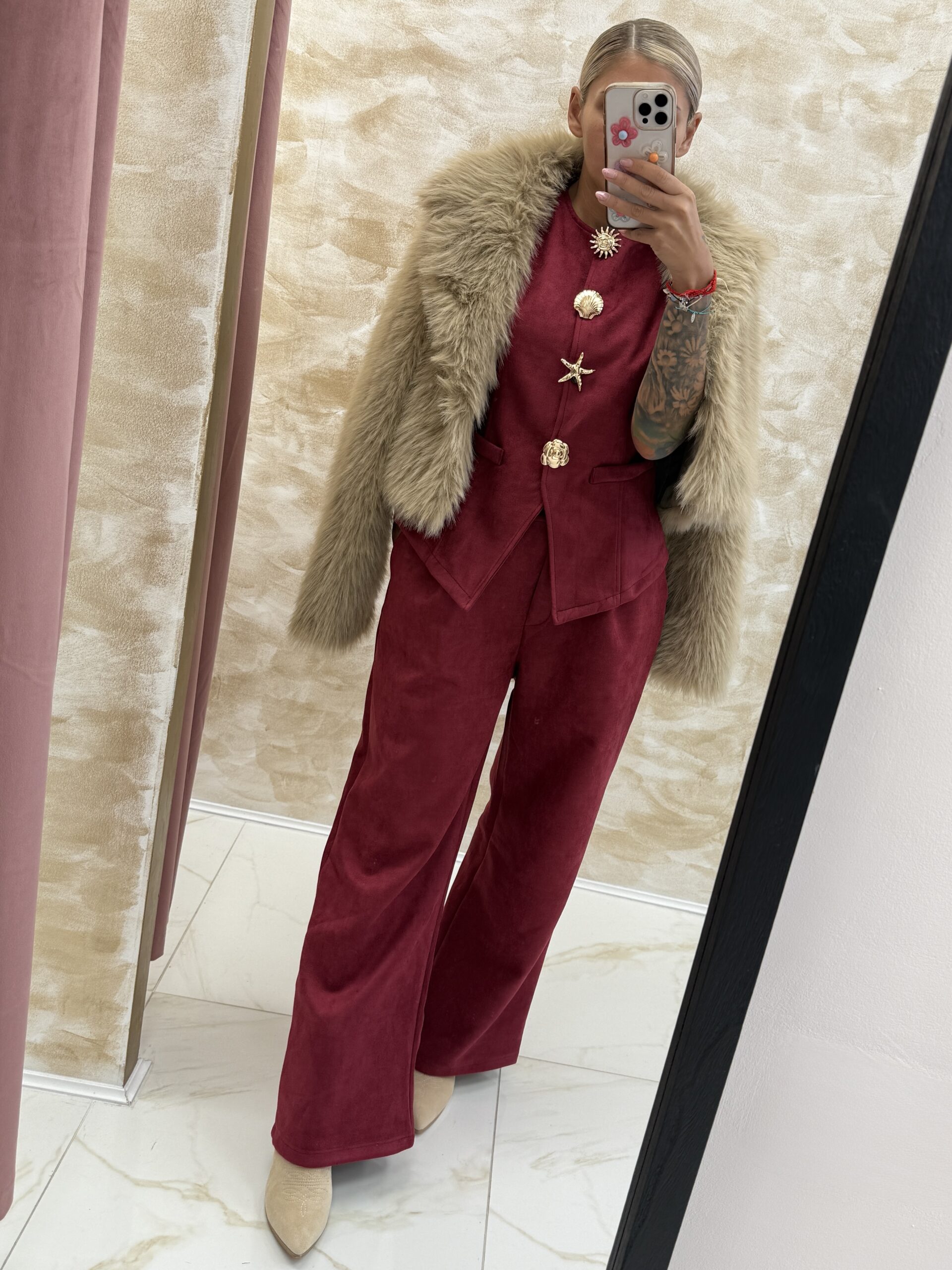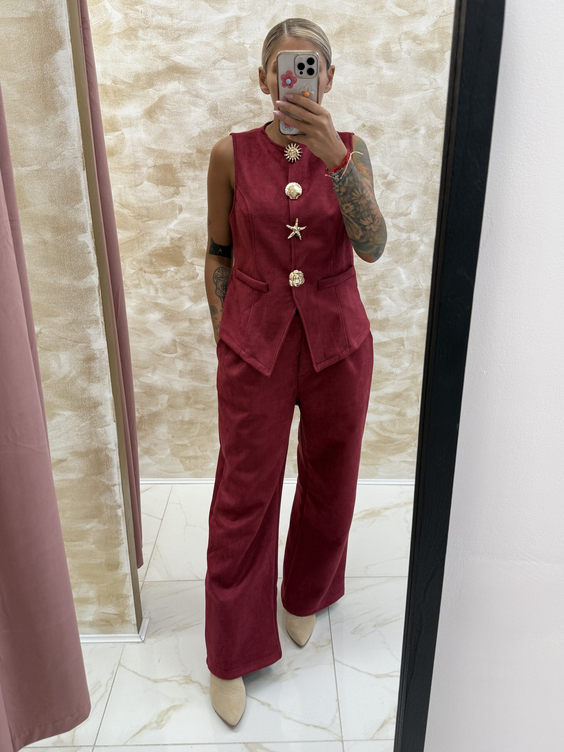 Bring the spirit of Italian summer to life with the Italian Seashell Muse Set in Fuchsia — a stunning blend of confidence and glamour 🇮🇹✨. Made from a smooth suede-effect fabric that drapes beautifully, this set features flowy, wide-leg trousers and a tailored vest designed to flatter your silhouette.