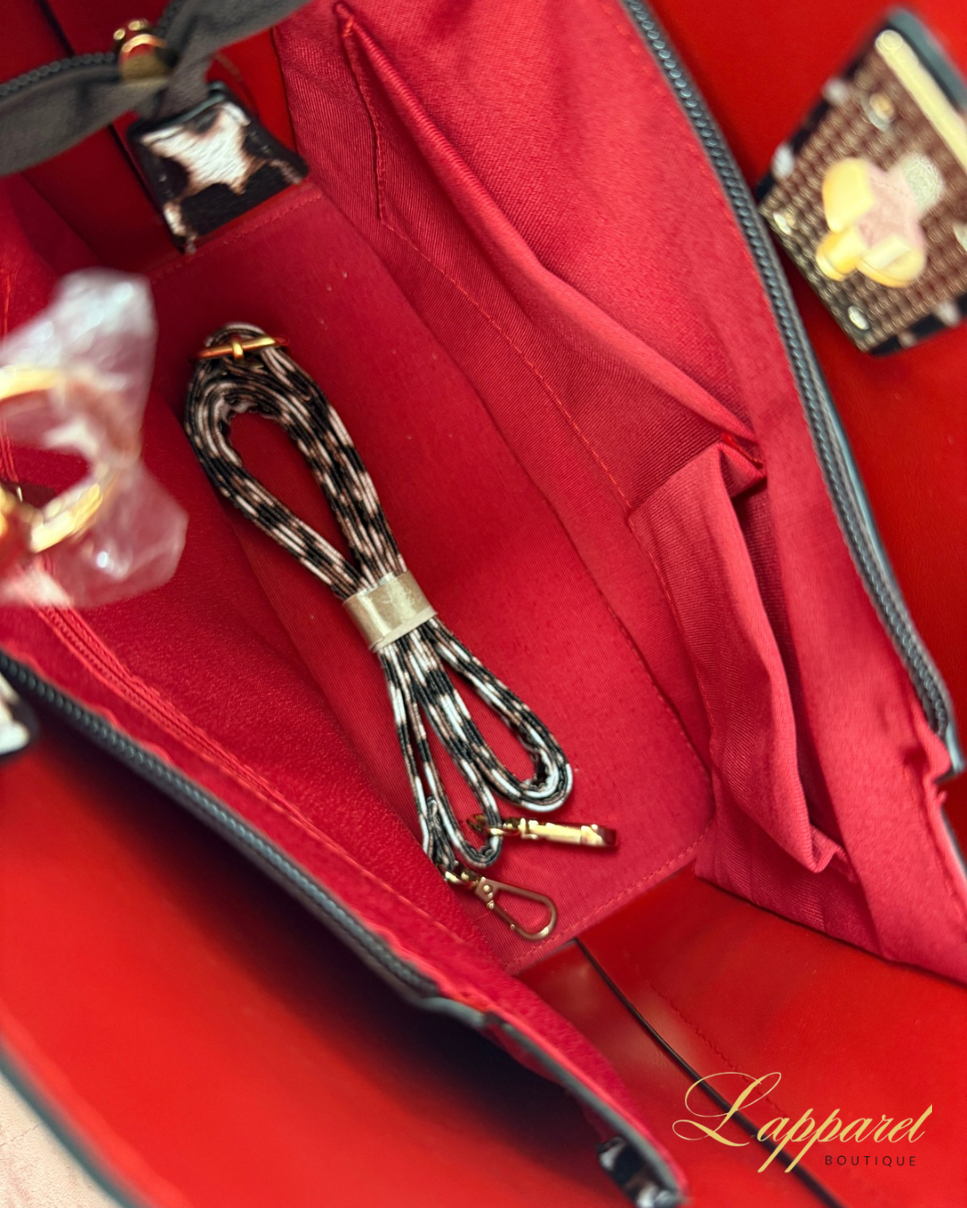 Unleash your wild side with the Savanna Chic Leopard Tote – the ultimate blend of fierce fashion and everyday practicality. Designed with a striking all-over leopard print, this tote brings instant attitude and glam to your look. The gold-tone hardware and statement twist-lock closure add a luxe touch, while the spacious interior ensures you can carry all your daily must-haves with ease.