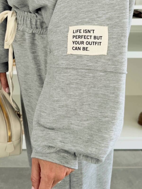 The matching trousers are designed with comfort in mind, featuring an elasticated waistband with adjustable drawstring, practical side pockets, and elasticated hems for a streamlined finish. Crafted from a soft, stretchy fabric blend, the set moves with you and feels as good as it looks.