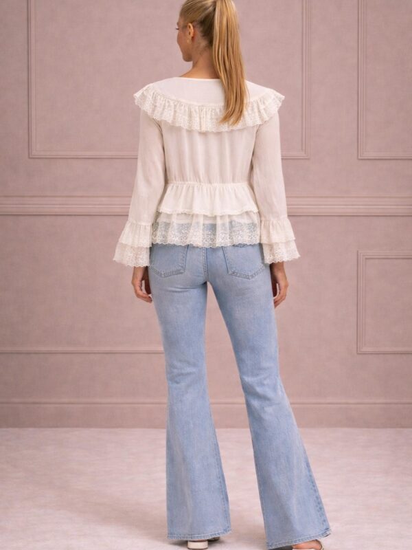 Add a touch of romance to your wardrobe with the Fleur Delicate Lace Blouse 🌸. Crafted in Italy from 100% pure cotton, this top features intricate lace detailing and graceful tiers for a feminine silhouette 🇮🇹. Perfect for dressing up or down, it offers breathable comfort and timeless elegance ✨.