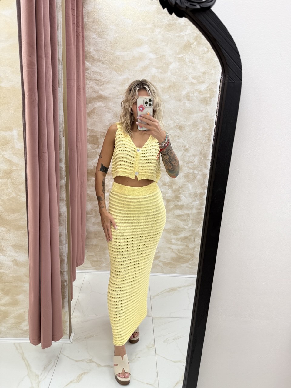 The cropped vest top with button detail adds a playful touch, while the high-waist maxi skirt elongates your silhouette 💃. Pair with sandals for a relaxed daytime look, or dress it up with wedges and statement jewellery for sunset evenings 🍹✨.