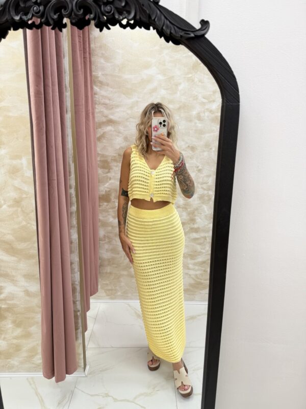 Bring the sunshine wherever you go with the Soleil Knit Co-Ord Set 🌞. Designed in a soft pastel yellow, this two-piece set features a lightweight crochet-style knit that’s breathable, flattering, and perfect for warm days.